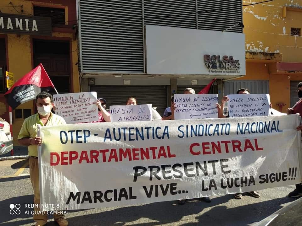 En la fecha de hoy, tal como lo hemos resuelto desde la Organización OTEP AUTÉNTICA SINDICATO NACIONAL desarrollamos el MÍTIN frente al MEC donde hicimos entrega de una nota de URGIMIENTO y REQUERIMIENTO sobre los puntos enunciados en la misma.